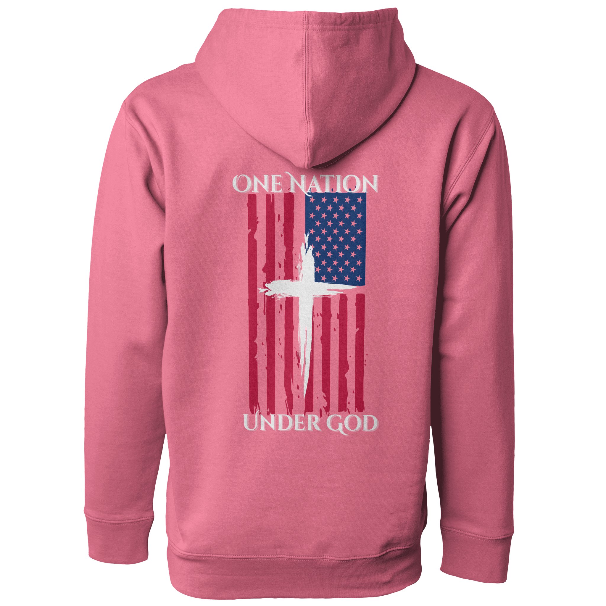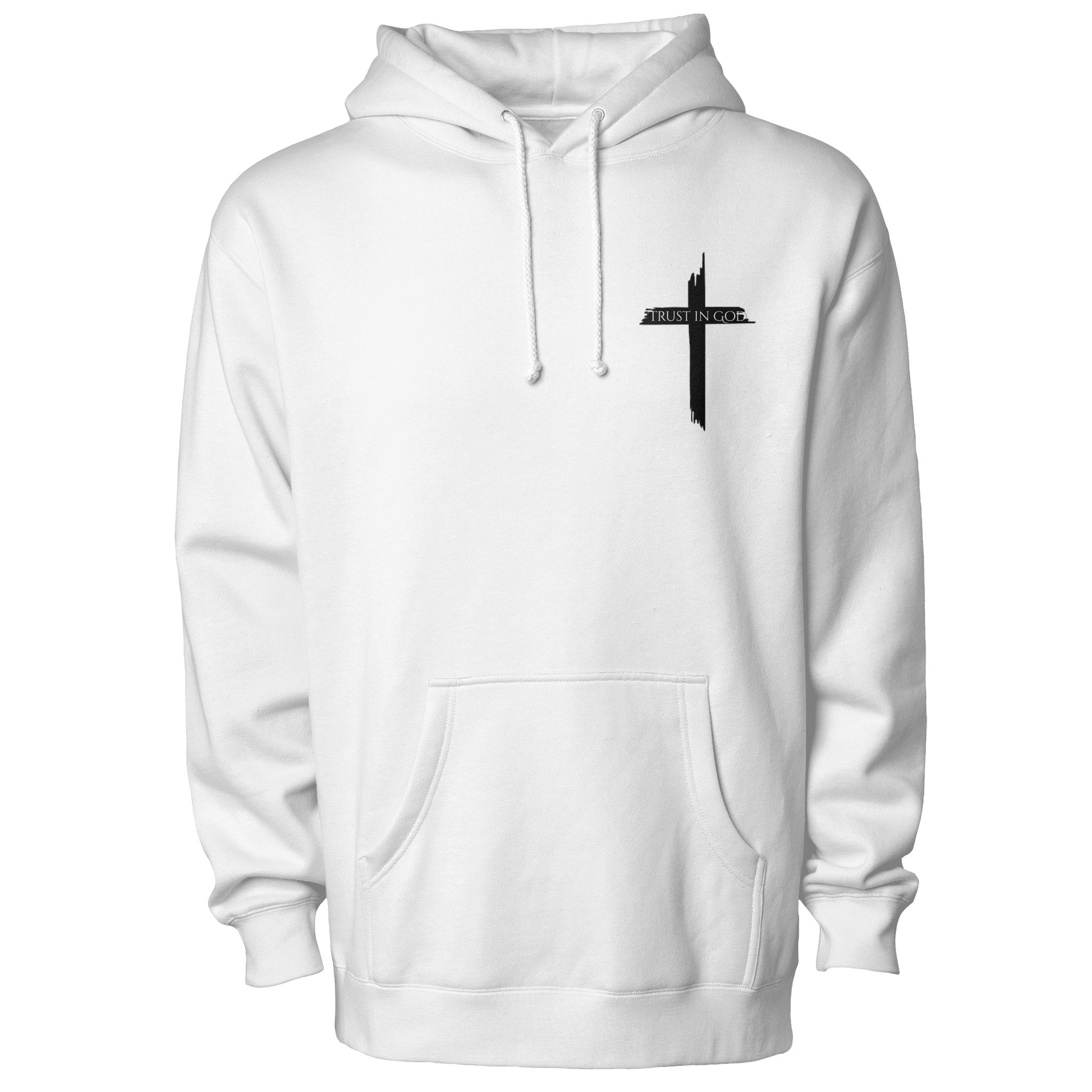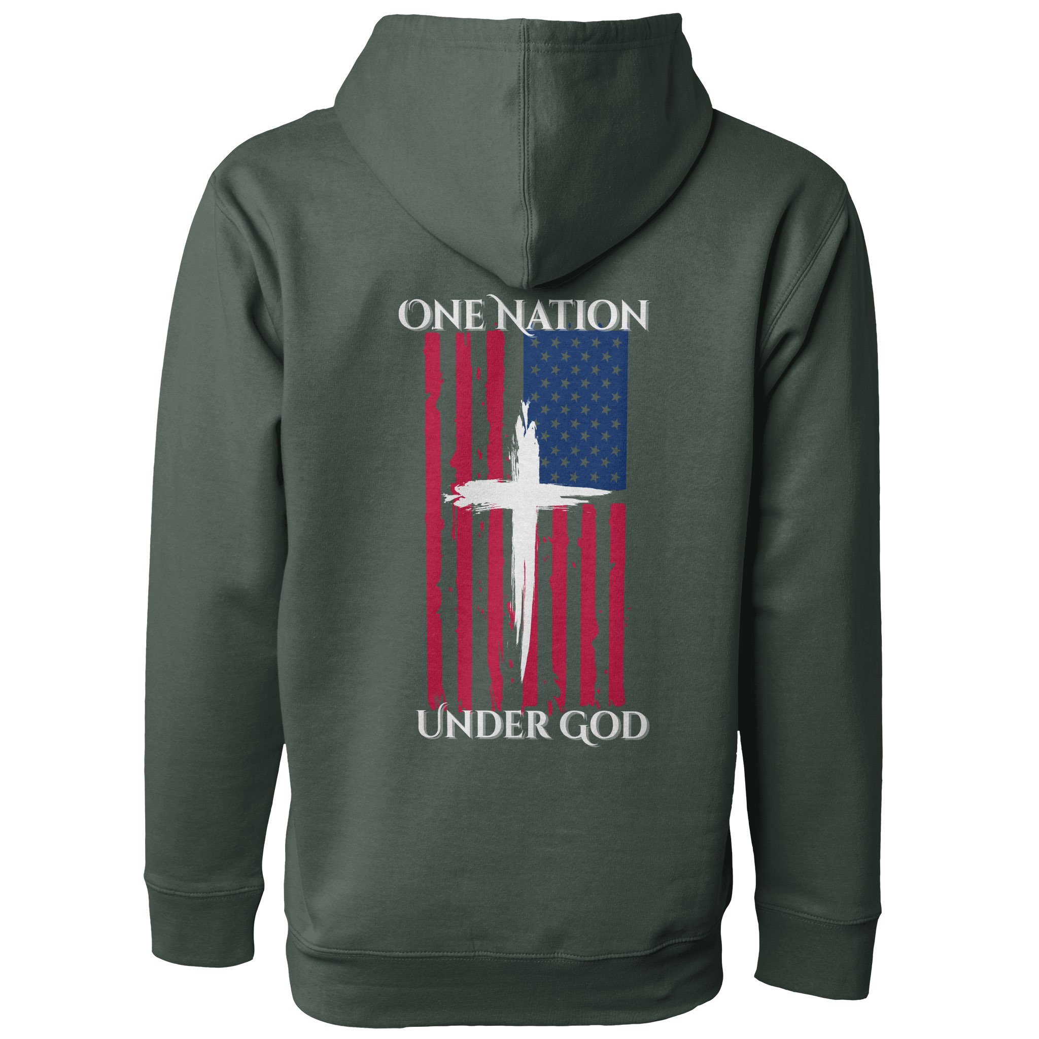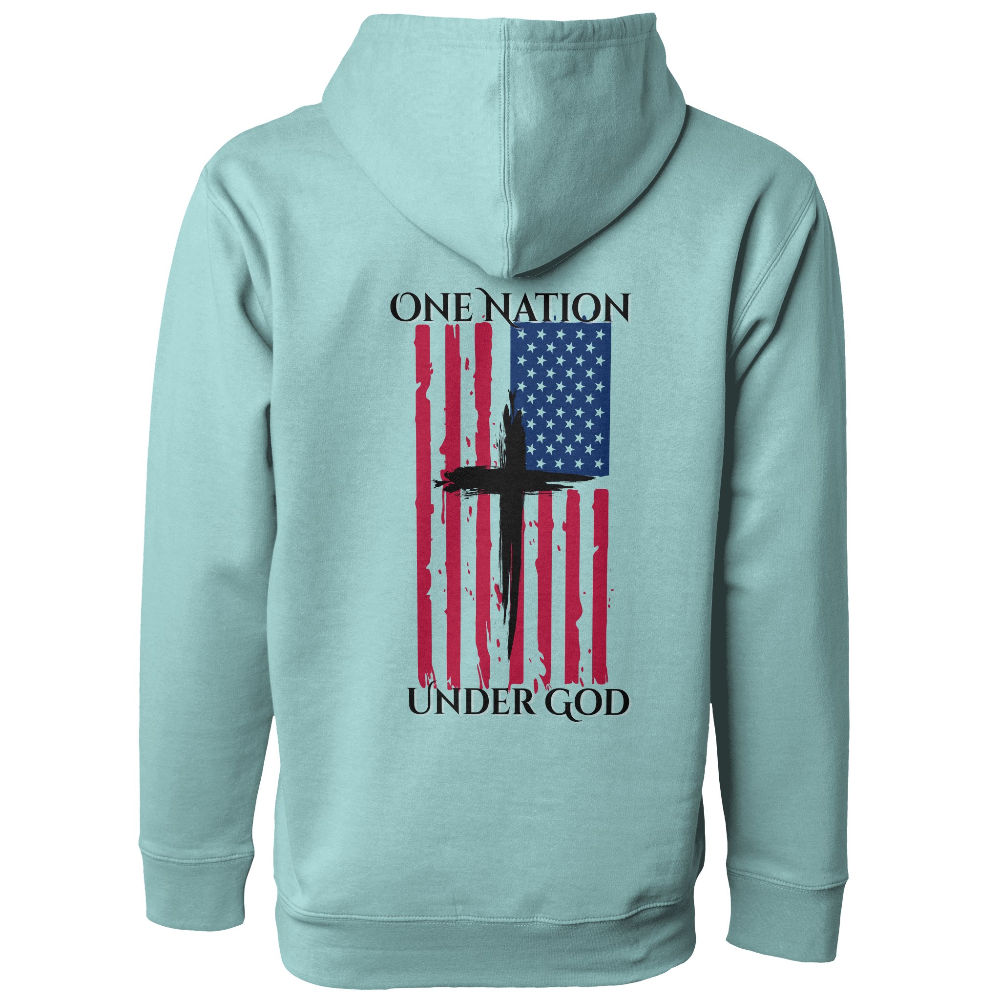 Show your faith and patriotism in one powerful piece with the One Nation Under God Sweatshirt, crafted from a soft and durable 80/20 cotton-poly blend. The back features a bold, distressed American flag merged with a striking white cross and the words “One Nation Under God,” creating a design that stands out with meaning. On the front, the clean Trust in God cross adds a simple but powerful reminder of where strength and peace come from.
