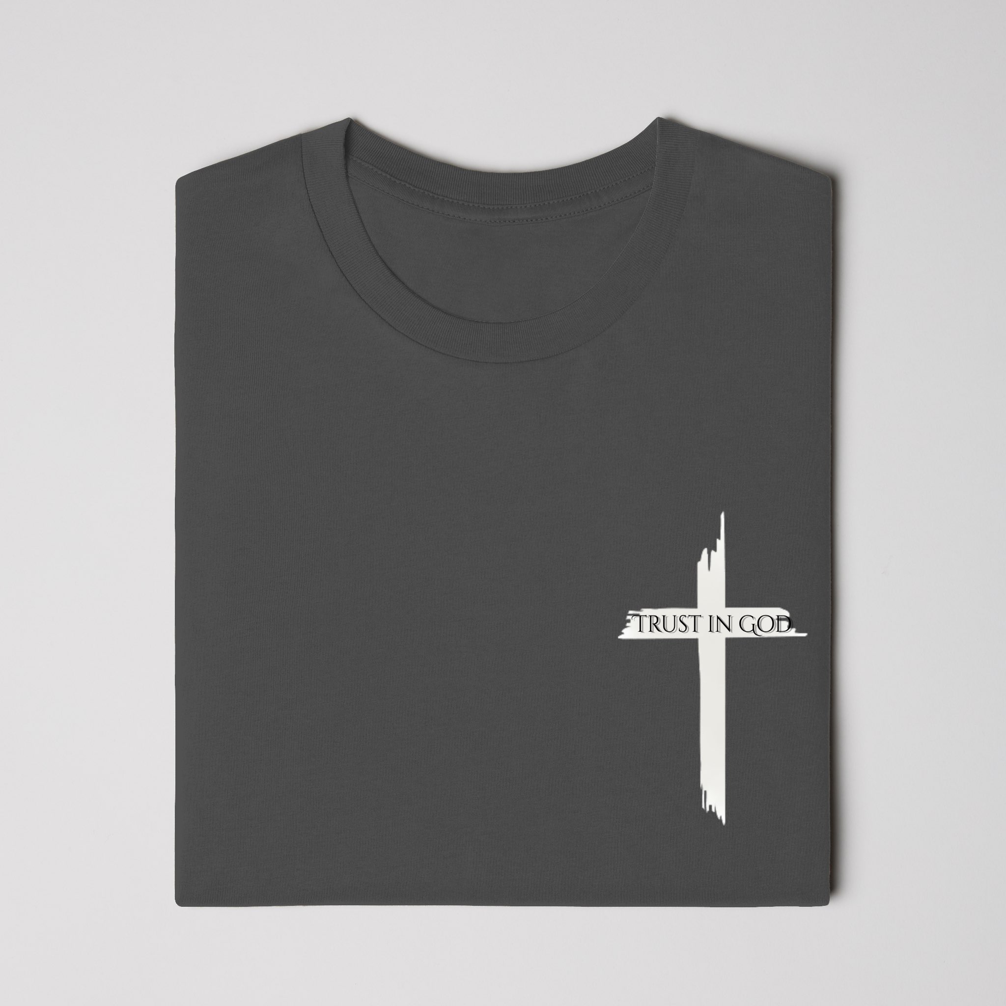 Show your faith and patriotism with this bold, inspiring design. Crafted from 100% premium cotton, this t-shirt delivers unbeatable comfort, breathability, and a classic fit that lasts wash after wash.